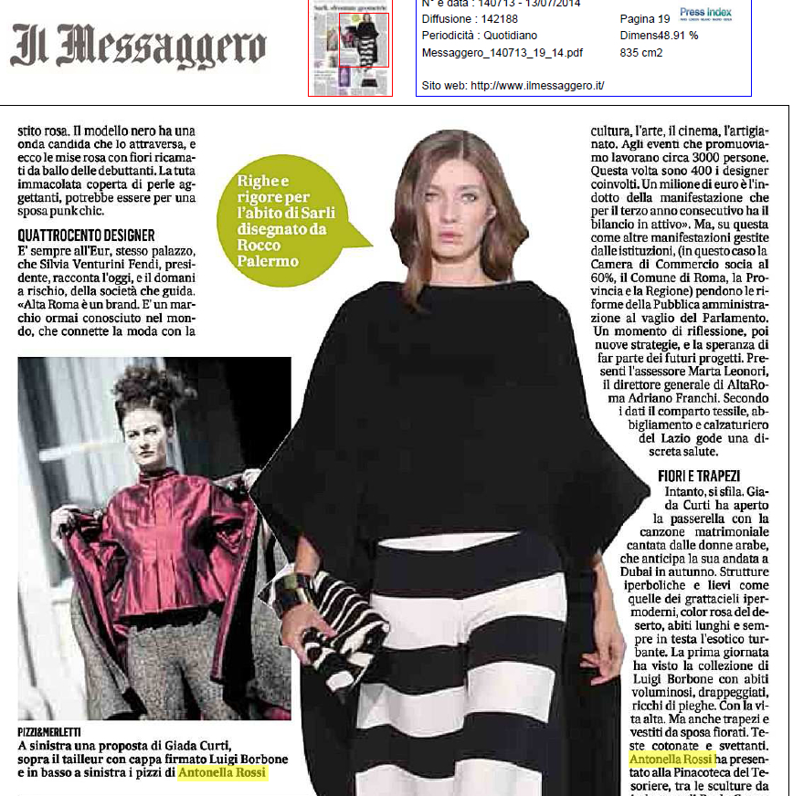 PRESS A gallery of Antonella Rossi publications on magazines Press MODA TOPICAL HAUTECOUTURE SPOSA MILANO FINANZA COSTA SMERALDA VOGUE SPOSA SPOSA BELLA LA REPUBBLICA VOGUE SPOSA BOOK RUNDSCHAU FASHION NEWS MAGAZINE DIVA E DONNA CORRIERE DELLA SERA FREETIME LUXURY MAGAZINE MAGAZINE STYLE L’OFFICIEL BALTICS SOUS IL MESSAGGERO